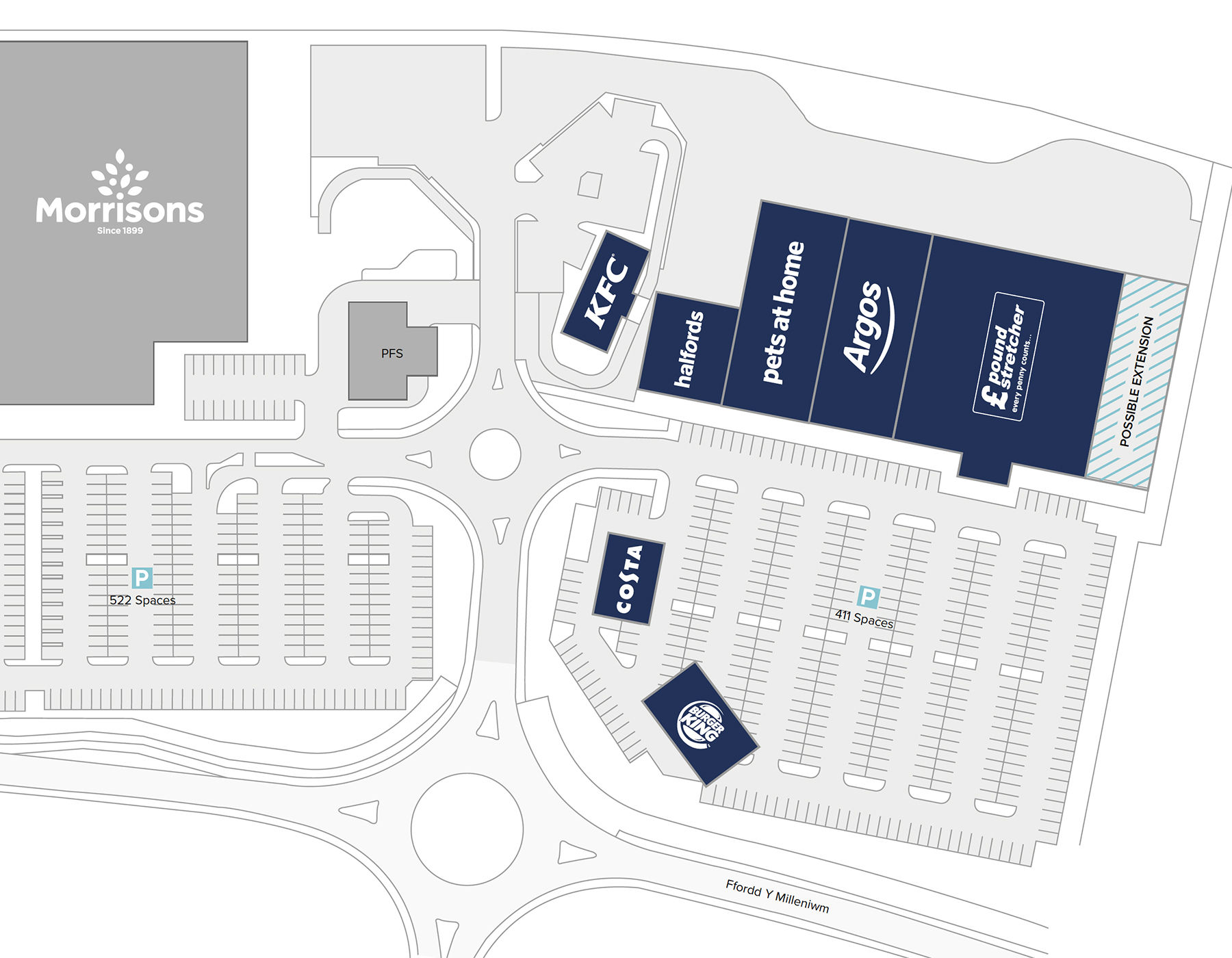 The park comprises a parade of 4 retail units and 3 standalone pods / A3 restaurants, totalling 72,148 sq ft and sits adjacent to a 71,570 sq ft Morrisons foodstore and associated petrol filling station.